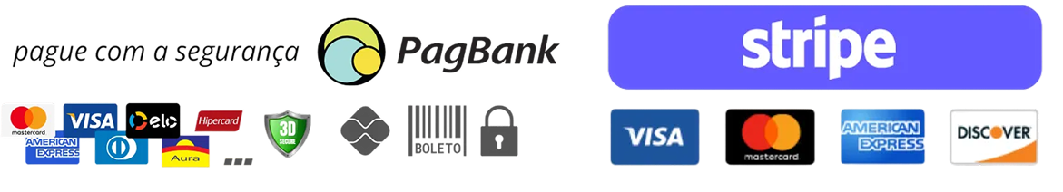 Aceitamos cartões de crédito, débito e Pix. Todo o processo é seguro e gerenciado por parceiros certificados.
